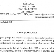 - Unitățile de învățământ din Comuna Lespezi vor beneficia prin proiectul ,,Dotarea cu mobilier, materiale didactice și echipamente digitale, prin PNRR – Componenta C15 Educație, de o investiție de 1.255.000 lei;