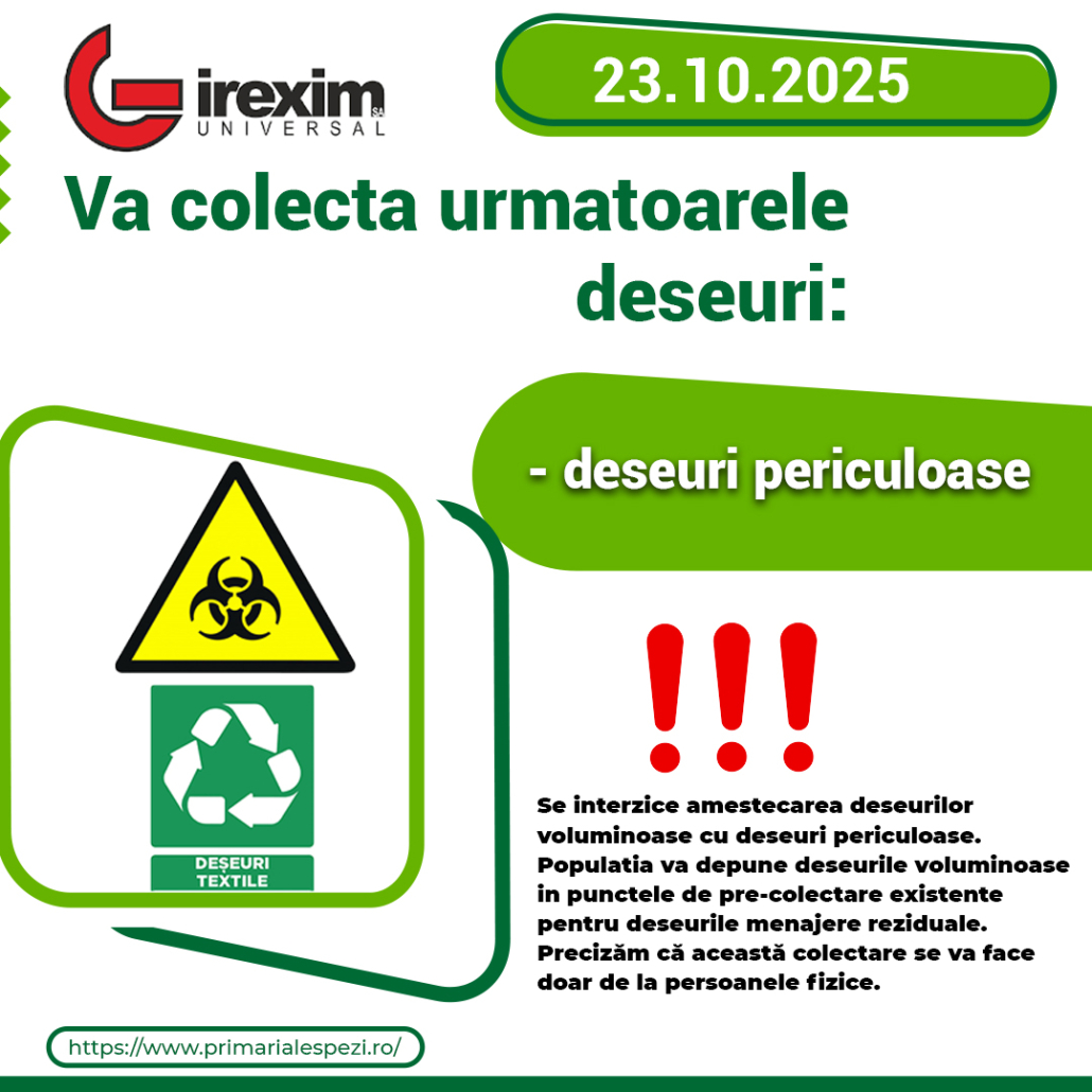 Vă rugam să participați la această acțiune, contribuind la protecția mediului și la menținerea curățeniei în comuna noastră.