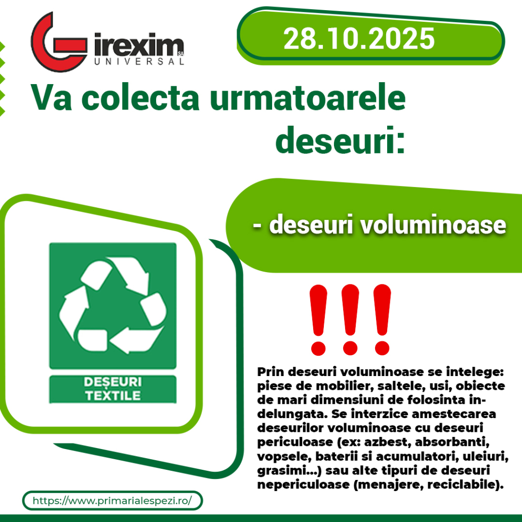 Vă rugam să participați la această acțiune, contribuind la protecția mediului și la menținerea curățeniei în comuna noastră.